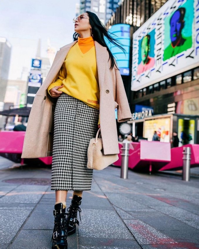 Юбка в клетку относится к предмету базового гардероба. Для создания лука с клетчатой юбкой воспользуйтесь легким «трюком», который заключается в следующем: выбирайте расцветку вещей в цветовой гамме клетчатого принта, таким образом наряд будет смотреться лаконично и гармонично.