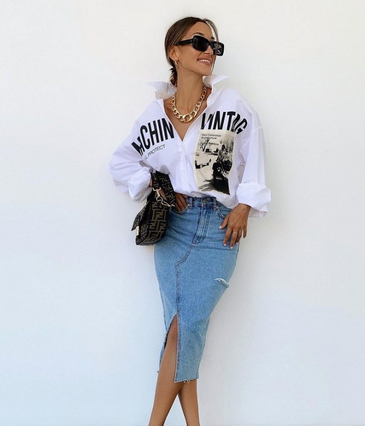 Если вы идете на прогулку, то рекомендуем вам надеть юбку из джинсовой ткани или трикотажа, и обуть кроссовки или ботинки на шнуровке, которые удобны и очень актуальны в этом году.Если вам нужно подобрать обувь на праздник, то рекомендуем вам присмотреться к: лодочкам на устойчивом каблуке, ботфортам и босоножкам.