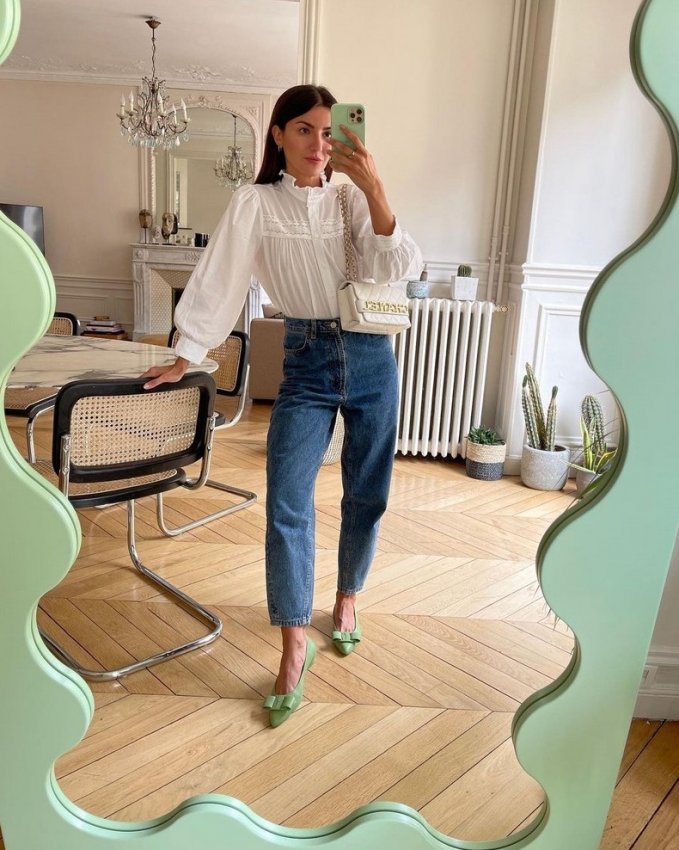 Базовый гардероб немыслим без аксессуаров – стильной сумки среднего размера в стиле Chanel или Dior, выполненные в черном, молочном или бежевом тонах, лодочек и балеток, кроссовок и босоножек. Также не забываем о головных уборах весна-лето 2022 – панама и бейсболка, а также дополняем все солнцезащитными очками в стиле «кошачий глаз».
