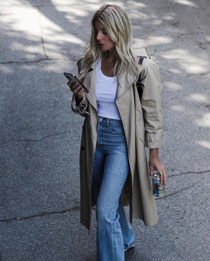 Подберите для себя сразу несколько вариантов майки весной и летом, которые могут отличаться фактурой ткани – гладкая или в рубчик, глубиной и формой вырезов, а также цветовой палитрой – белая, молочная, бежевая, капучино, коричневая, черная. Разнообразие маек в базовом гардеробе позволит сменят одну на другую, подбирая более подходящую под тот или иной лук.