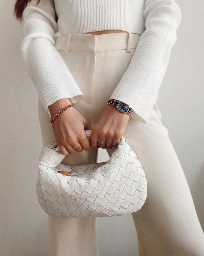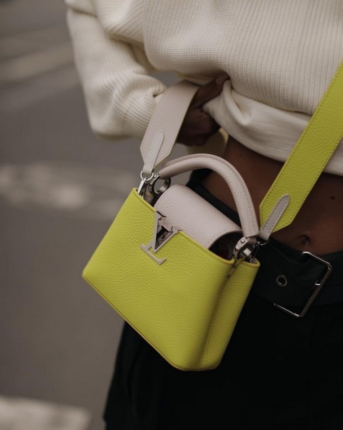Дизайнеры всячески экспериментируют с размерами модных сумок, представляя на обозрение зрителей не только классический средний размер сумок, но также и очень миниматюрные модели. Такие крошечные сумочки навряд ли позволят взять с собой все желаемое, но необходимые вещи, как например, санитайзер, маску и кредитку Вы сможете всегда иметь под рукой.А на случай, если есть необходимость захватить больше вещей, стилисты предлагают взять еще одну сумочку побольше и создать в образе осень-зима 2022-2023 дуэт из двух сумок одновременно. Смотрится такое решение креативненько.