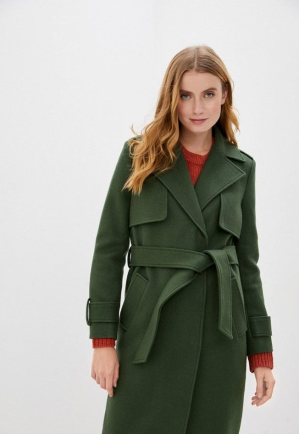 Военизированные тона тоже давно прописались в модной палитре. Драповое пальто модного оливкового цвета. Рукав реглан, воротник - апаш.