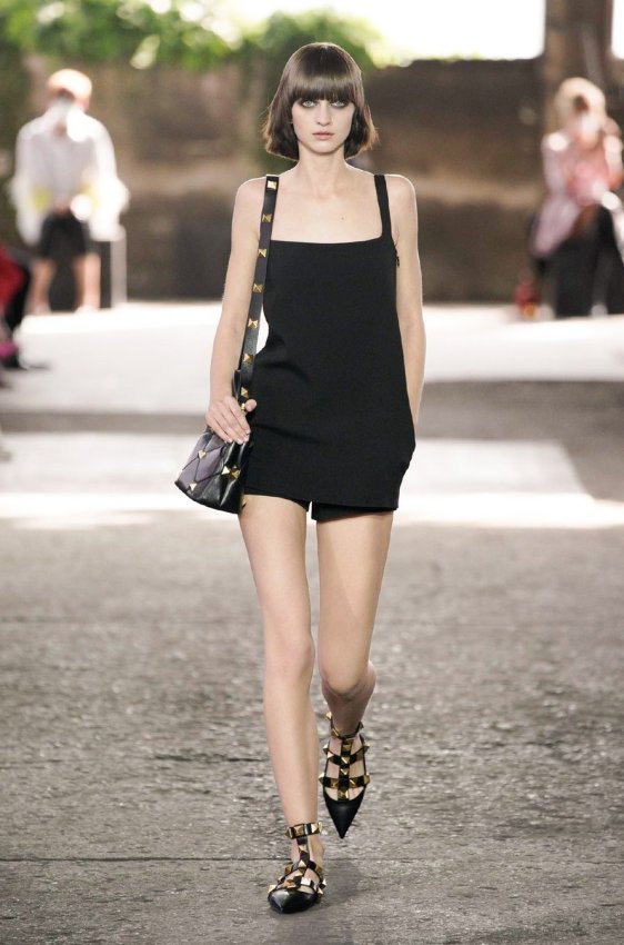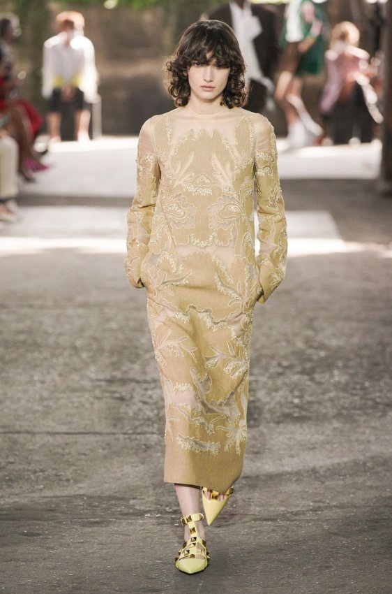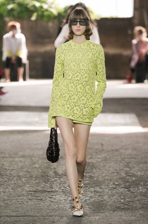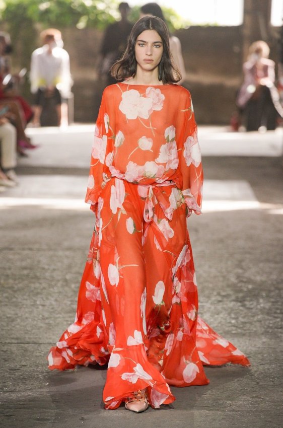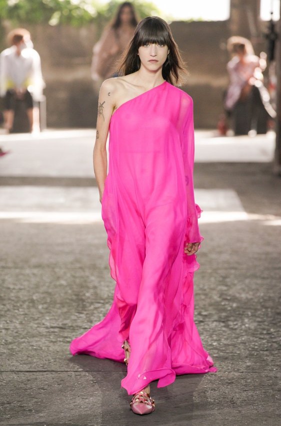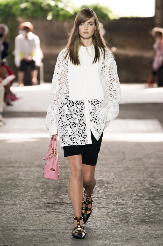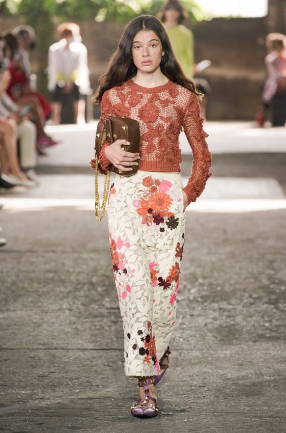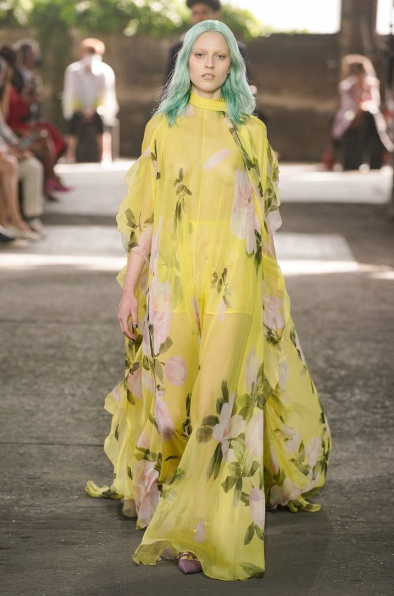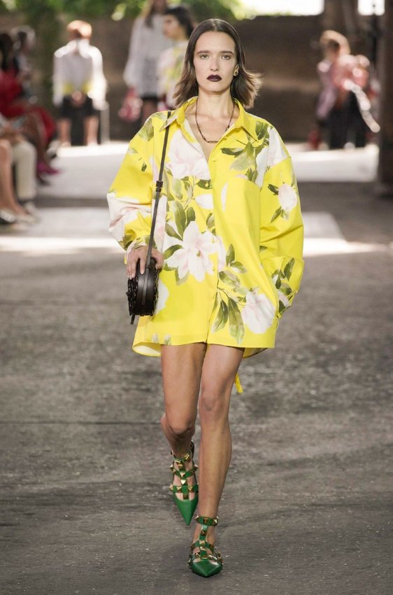 В безупречную (впрочем, как и всегда) коллекцию вошли не только абсолютно прозрачные платья из яркого шифона — визитная карточка Пиччоли — но и рубашки из резного кружева, ультракороткие шорты из кожи, легкие свитеры, плетёные юбки с кристаллами и костюмы, украшенные крупным цветочным принтом. Кроме того, Пьерпаоло вернул в свою коллекцию аксессуары и обувь со знаменитыми металлическими шипами.