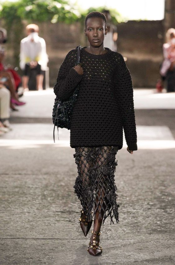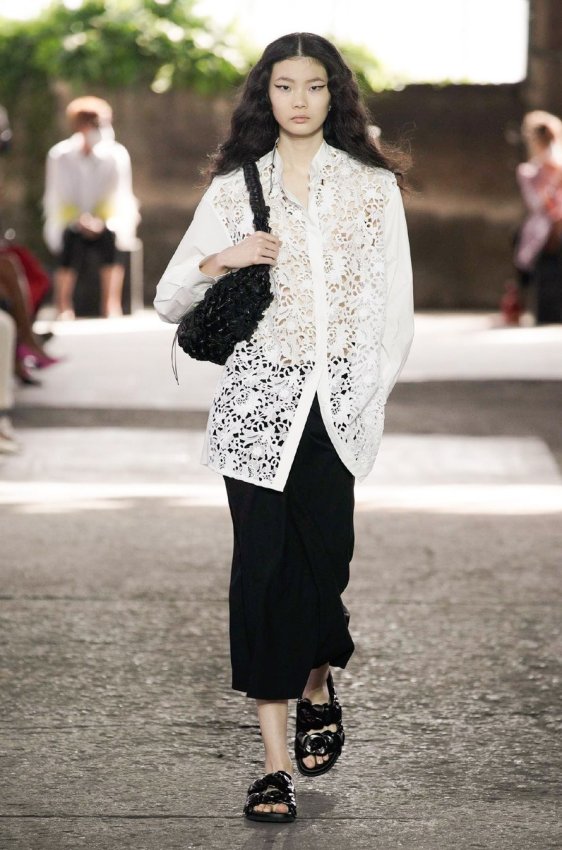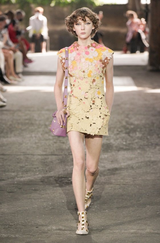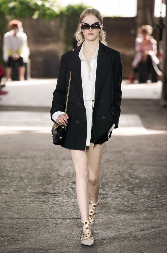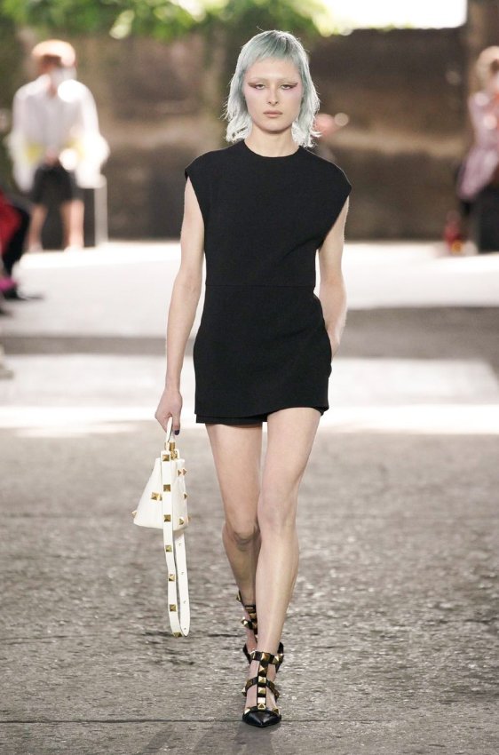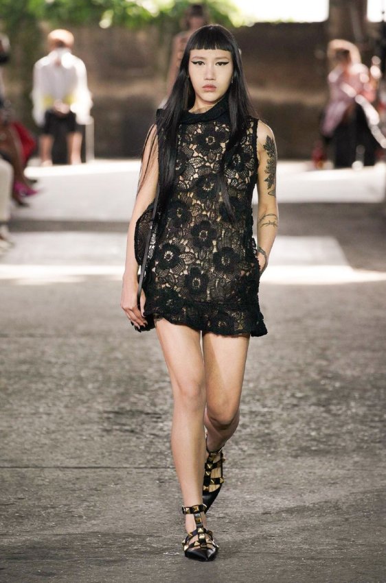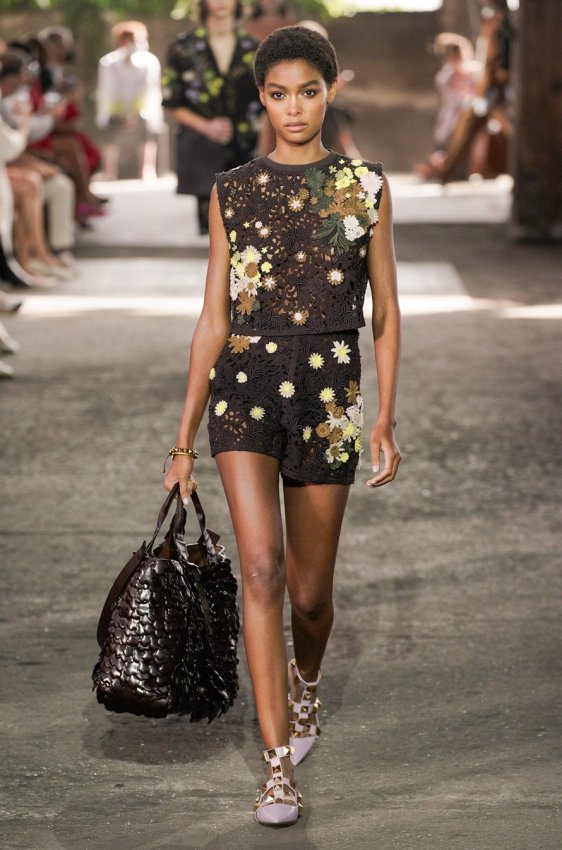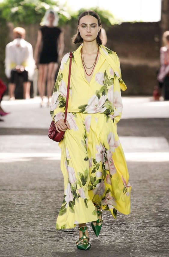 В безупречную (впрочем, как и всегда) коллекцию вошли не только абсолютно прозрачные платья из яркого шифона — визитная карточка Пиччоли — но и рубашки из резного кружева, ультракороткие шорты из кожи, легкие свитеры, плетёные юбки с кристаллами и костюмы, украшенные крупным цветочным принтом. Кроме того, Пьерпаоло вернул в свою коллекцию аксессуары и обувь со знаменитыми металлическими шипами.