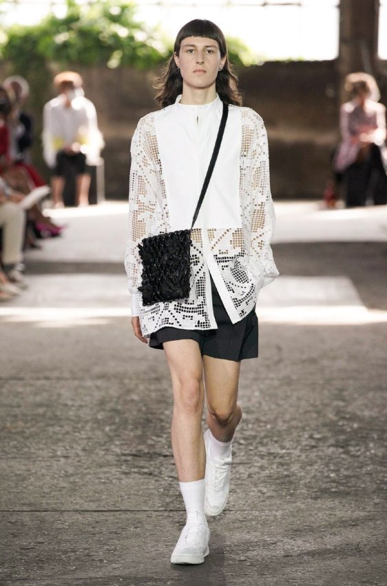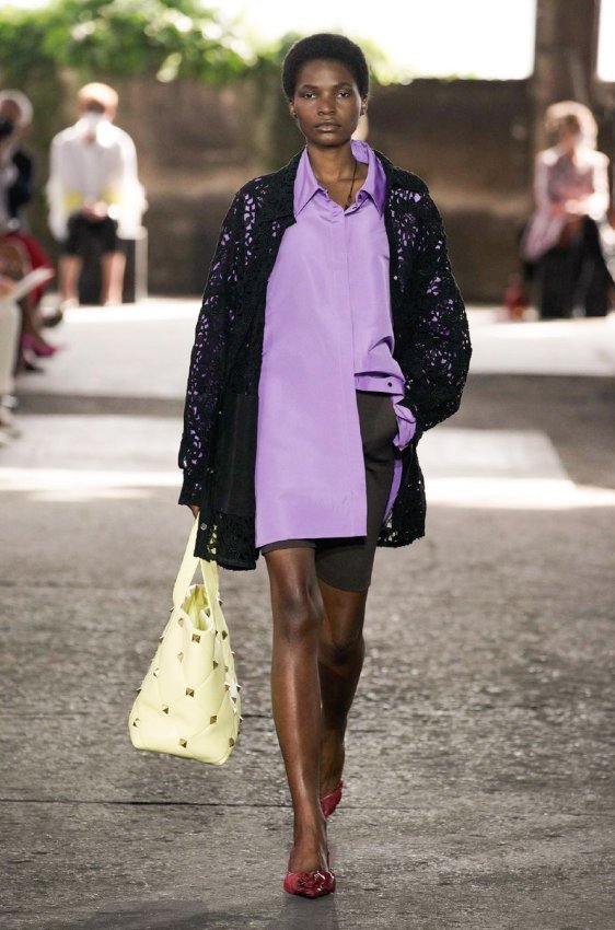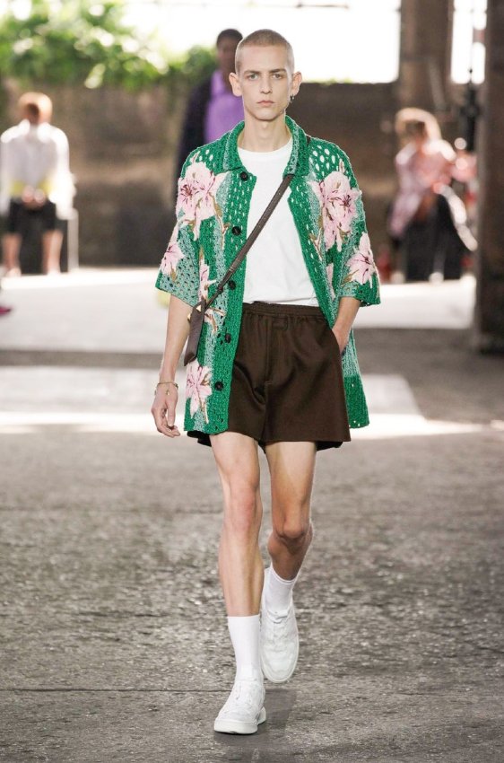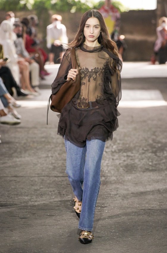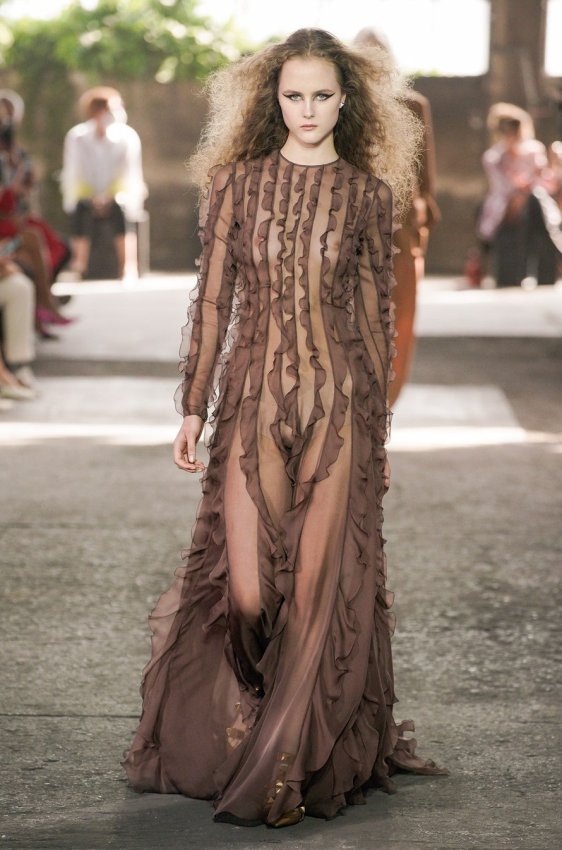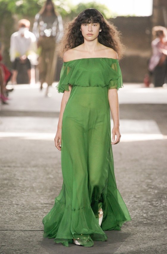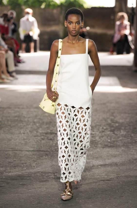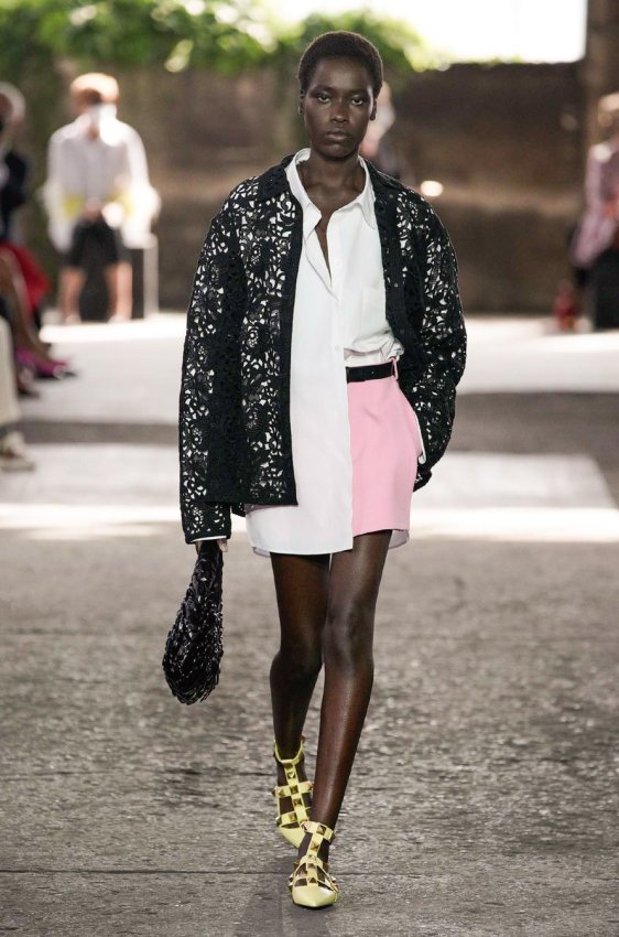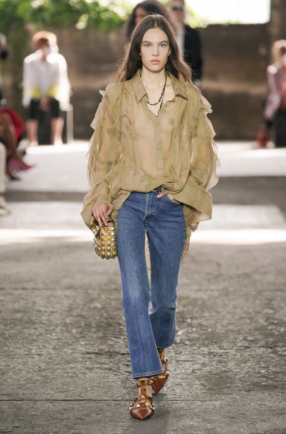 В безупречную (впрочем, как и всегда) коллекцию вошли не только абсолютно прозрачные платья из яркого шифона — визитная карточка Пиччоли — но и рубашки из резного кружева, ультракороткие шорты из кожи, легкие свитеры, плетёные юбки с кристаллами и костюмы, украшенные крупным цветочным принтом. Кроме того, Пьерпаоло вернул в свою коллекцию аксессуары и обувь со знаменитыми металлическими шипами.