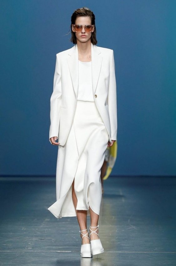 Минималистично — не значит скучно. Это в очередной раз доказывает бренд Boss, дебютировавший на Неделе моды в Милане несколько часов назад. Дизайнеры марки представили идеальный повседневный гардероб, состоящий из красивых, а главное правильных костюмов, несложных асимметричных платьев с широкими поясами и объёмных свитеров. Цветовая палитра была вдохновлена торговым комплексом Hudson Yards в Нью-Йорке, а потому в коллекции так много чистых оттенков белого, небесно-голубого и бежевого.