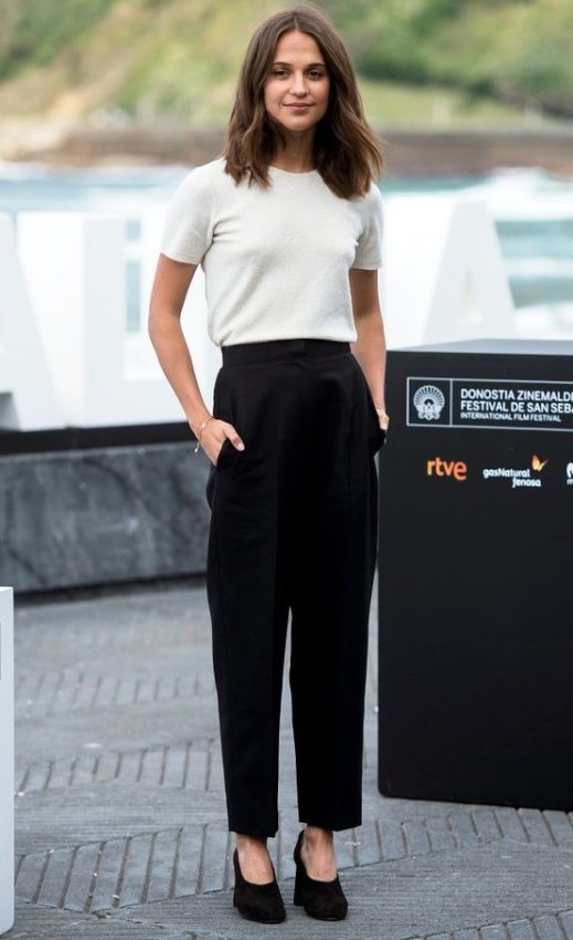 Важная деталь делового гардероба — белая футболка. Она должна быть из плотной ткани, чтобы не было видно белье. Достаточно свободной по облеганию. В целом это замена традиционной белой офисной рубашке в мужском стиле. Вместо футболки может быть джемпер на осень. Но помним про силуэт и плотность. Никаких кофточек в облипочку.