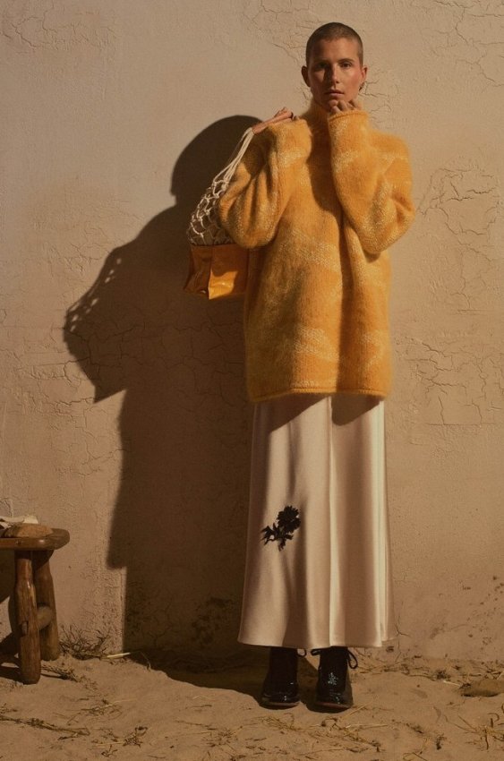 Длинная юбка до щиколотки вновь популярна — особенно если она сделана из атласа. Мы рекомендуем носить эту женственную вещь на контрасте с чем-то грубым: подойдет куртка как из магазина спецодежды или рыбацкий свитер (и ничего страшного, если он будет на пару размеров больше). Юбку можно заменить шелковым платьем-комбинацией, которое, скорее всего, завалялось в вашем шкафу с прошлых сезонов.