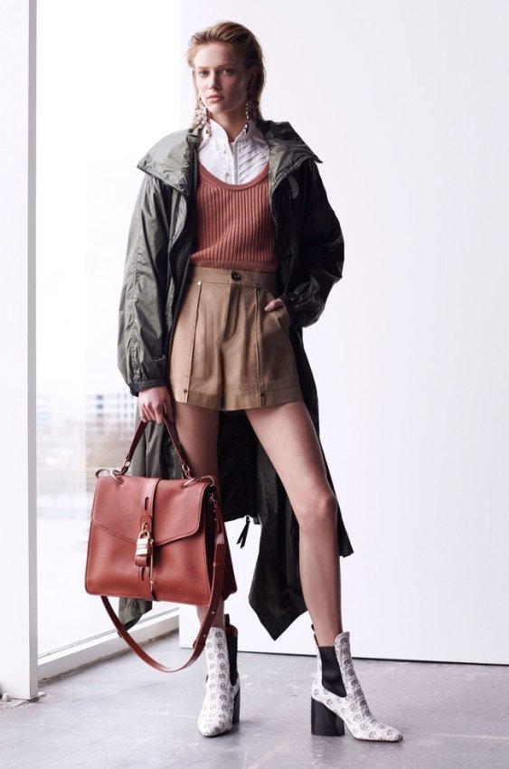 Технологичная куртка — вещь, которую действительно нужно купить в этом сезоне (возможно, единственная). Легкую парку можно накидывать поверх повседневных комплектов, платьев или строгих костюмов. В лукбуке Chloe мы подсмотрели сочетание, идеальное для теплых дней в конце апреля, когда утром и вечером холодно, а днем +20.