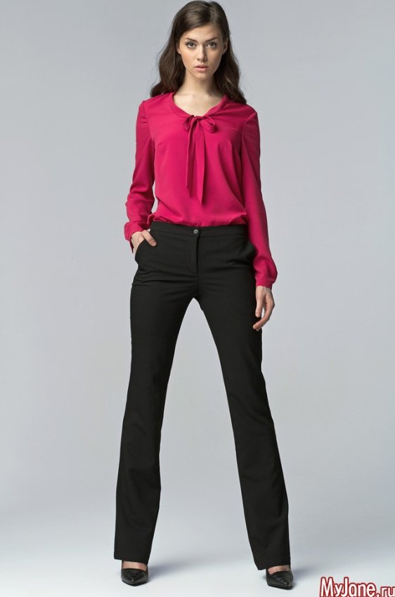 Прямые классические черные брюки с чуть завышенной талией пригодятся всем, всегда и везде! Кстати, это вполне могут быть и брюки со стрелками – стрелки в мире моды тоже всегда были, есть и будут в огромном почете!