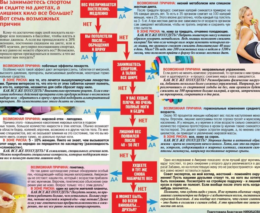 Кому-то достаточно пару дней посидеть на кефире или поплавать в бассейне, чтобы влезть в новые джинсы. А если вы принадлежите к 20% женщин, постоянно сидящим на диете, или к 40% мужчин, регулярно посещающим спортзал, и все равно не можете сбросить вес? Возможно, пришло время призадуматься и понять: а что же мешает вам похудеть? Смотрим инфографику ниже и разбираемся в причинах проблем с весом.
