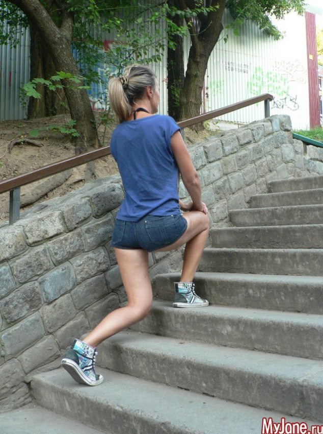 Выбрав в качестве площадки для тренировок пролет лестницы, пропускайте одну ступеньку при подъеме наверх и опускайтесь в классический выпад. Далее подтягивайте на верхнюю ступеньку ногу, которая осталась внизу, и следующий шаг через ступеньку делайте с приставленной ноги.