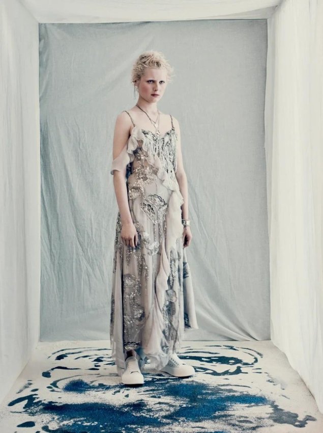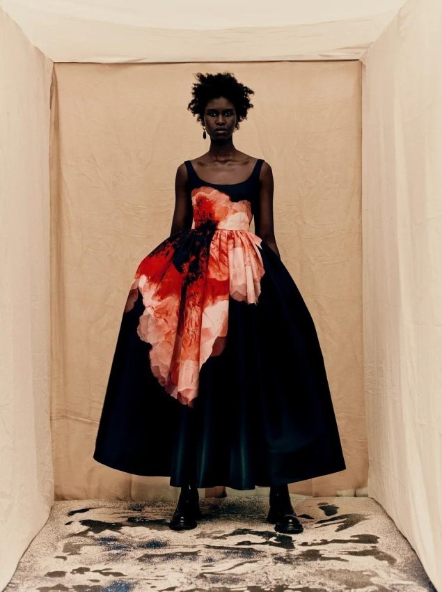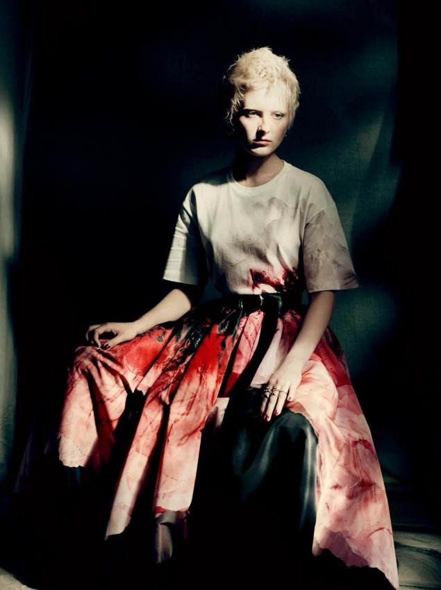 Цветочный принт — классика, к которой все мы уже давно привыкли и от которой не ожидаем чего-то экстраординарного. Но не в случае Alexander McQueen — цветы в исполнении Сары Бертон всегда выглядят масштабно и магически. И доказывает это новая осенне-зимняя коллекция, лукбук которой дизайнер представила миру сегодня днем. На готических кадрах, снятых Паоло Роверси, модели позируют в пышных платьях с пятнами «крови», которые в действительности оказываются анемонами. По словам Бертон, эти цветы являются самыми эфемерными и в то же время сильными — они призваны отражать характер женщины, которая осмелится надеть их на себя.