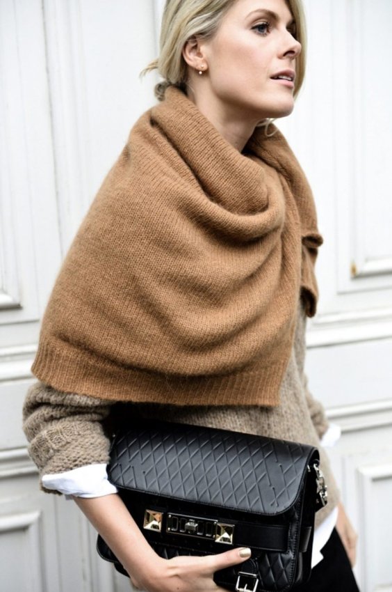 3. Шарф, шаль или платок — это не просто аксессуар, а тоже дополнительный слой. Кстати, в такую вот изменчивую погоду, хороший шарф (тонкий, но теплый) может стать настоящей палочкой-выручалочкой). Кстати, свитер, повязанный на поясе или накинутый на плечи — это тоже слой и вообще интересный стильный ход.