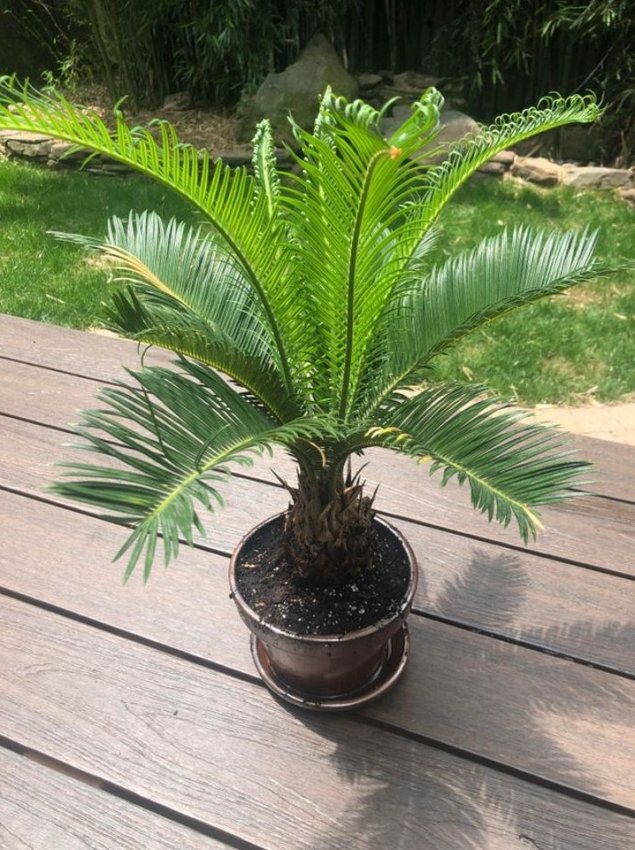 Цикас является родственником папоротника, но уж очень напоминает пальму. Растение любит рассеянный солнечный свет или полутень, умеренный полив и высокую влажность воздуха. Чтобы листья у цикаса не были повернуты в одну сторону, достаточно просто его регулярно поворачивать.