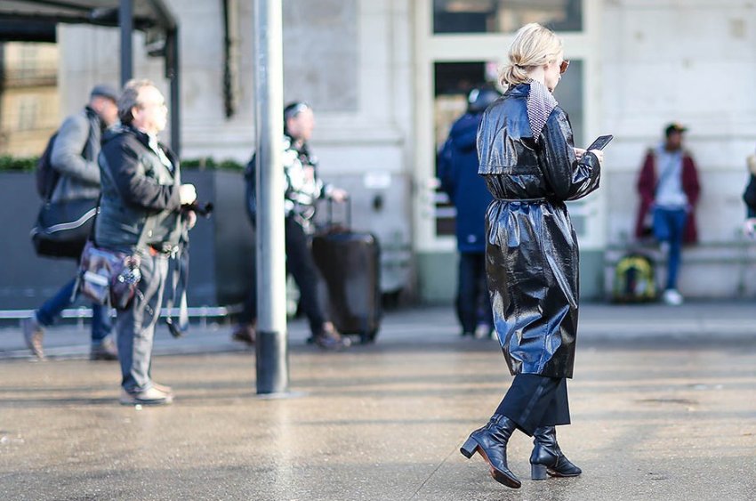 Одним из главных трендов Недель моды осень-зима 2017 стал винил: носить верхнюю одежду из этого материала в наступившем сезоне советовали Saint Laurent, Chloé и Lanvin. Несомненный плюс тренда — водонепроницаемость. Верхняя одежда из винила или кожи также станет хорошей альтернативой тренчам и шерстяным пальто в дождливую погоду.