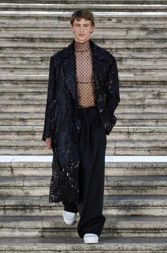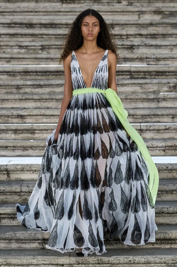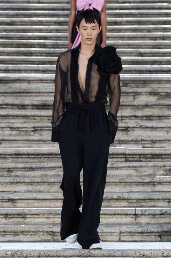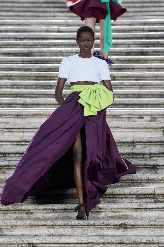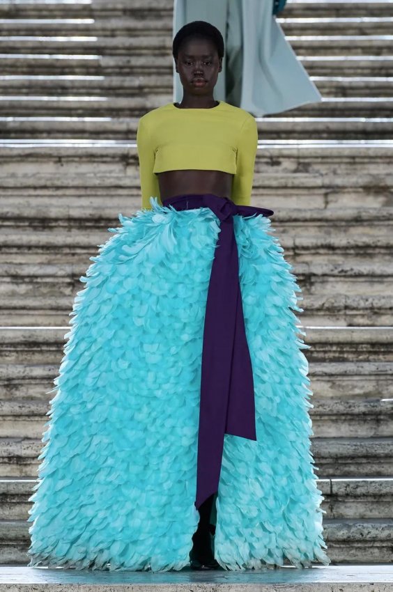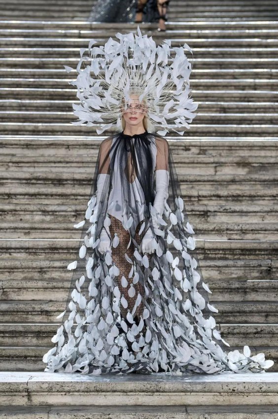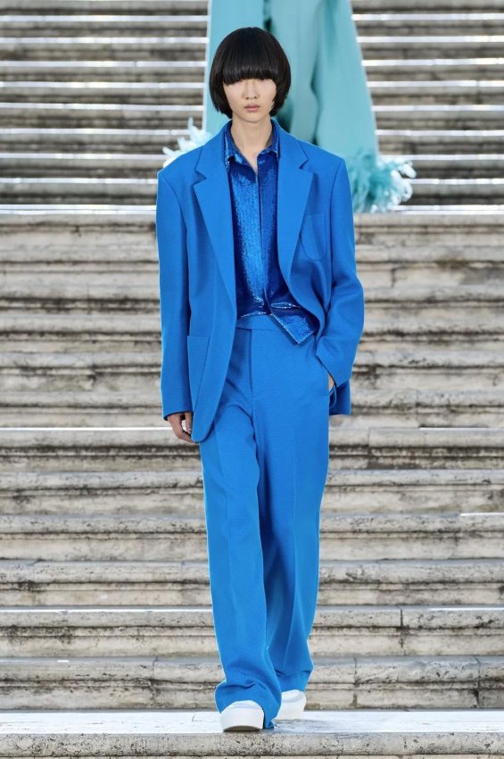 Прошлым вечером в Париже свою новую кутюрную коллекцию для Valentino представил Пьерпаоло Пиччоли — она получила название The Beginning. В этом сезоне дизайнер вновь активно работает с цветами: в прямом и переносном смысле. На подиуме мы увидели буйство ярких красок, а также отсылки к образам живых цветов: модели выходили на подиум в головных уборах-бутонах. Что касается оттенков, то тут Пиччоли показал богатую палитру, которая плавно сменялась вместе с настроением: в начале пышные платья, накидки и костюмы были окрашены в алый, затем появился уже фирменный розовый, который сменился на фиолетовый, кислотно-зелёный и оранжевый. «Отдыхом» от красок стали прозрачные платья и топы серебристого цвета: сияние — ещё один большой тренд коллекции.