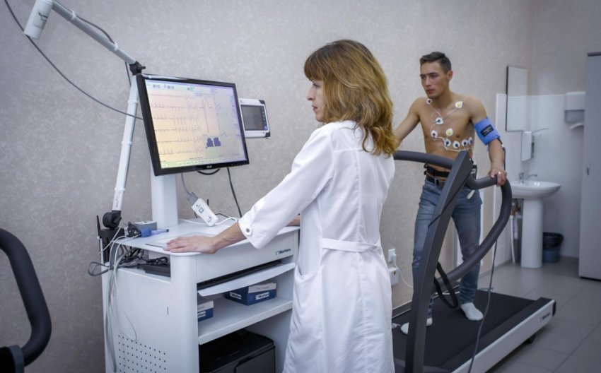 Направление на исследование можно получить в кабинете кардиолога или стационаре. Непосредственно перед проведением тредмил-теста пациент обязательно проходит осмотр у терапевта. В кабинете функциональной диагностики медсестра снимает ЭКГ, регистрирует показатели кровяного давления и частоту сокращений миокарда, при необходимости врач проводит эхокардиографию.