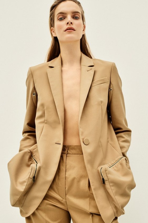 Жакет из шерсти, Fendi; брюки из хлопка, Alberta Ferretti; моносерьга, Niessing